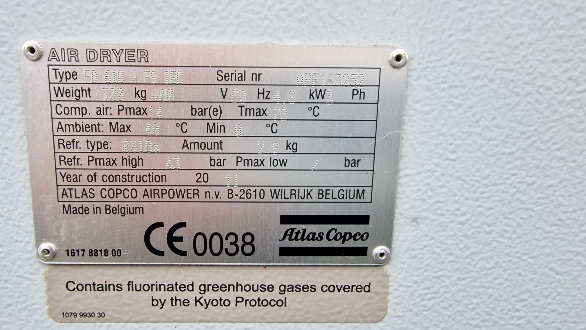 - Kapacitet 610 l/sec (36.600 l/min ) - Tačka rose +3 C - Pritisak do 14 bara - Priključak DN100 - Rashladni gas R410a - Godište proizvodnje 2011 - Ser.br. APF163252 DIMENZIJE: - Širina : 1.060 mm - Dubina : 1.040 mm - Visina : 1.660 mm - Masa : 320 kg Garancija na kompletan uređaj 12 meseci. Sušač može da se pogleda i pusti u probni rad u našem servisnom centru u Šimanovcima